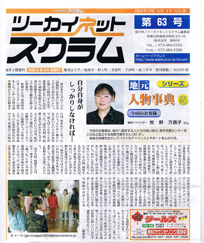 今回のゲストには、2005年8月の”わかばのひろば”第二回オンエアでゲスト出演いただいた、留学支援サポートセンター”ジールズ”のオーナー 牧野万貴子さんをお招きしました。およそ2年半ぶりの再出演となる牧野さん。前回のオンエアから現在に至るまで、よりいっそう、順調に事業を拡大されておられました。牧野さんが経営する”ジールズ”は、留学支援サポートセンターという名のごとく、「和歌山の地元で安心して相談できる留学機関」を目指して立ちあげられた会社。現在ではすでに、12カ国にのぼる留学先への支援をお手伝いしているそうです。ひとことで”留学”といっても、”ジールズ”で支援する”留学”のカタチはさまざま。ほんの1週間程度のプチ留学から、長期にわたるロングステイまでをお手伝いしているそうで、老若男女、幅広い年齢の方々が異国文化を求めて”ジーズル”を訪れているそうです。”留学”を希望される方のなかには、社会人数年目の方がお仕事を辞めて渡航するケースが少なくないとか。そんな方々が直面する壁が、帰国後の再就職です。もちろん、”留学”という貴重な体験は、幅広い視野や価値観、何事にも耐える力、そして臨機応変に対応できる柔軟性を養い、総じて人間性を高めることには非常に有効な手段ですが、帰国後の”再就職”という壁は決して低くないのが現実のようです。このような問題を解決し、少しでも多くの方々に”留学”という貴重な体験をしていただきたいと考えた牧野さんは、現在では和歌山県内・県外の就職紹介業者と業務提携を行い、”帰国後の就職(再就職)支援事業部”を立ち上げて、海外経験を活かした就職・再就職の支援に力を注いでいるとのことです。また、気軽に異文化に触れて欲しいという思いから、最近では”おしゃべりかふぇ(語学カフェ)”というイベントを開催!コーヒーを片手にお好みの語学でおしゃべりする場を提供、すでにイベントの初回から、多くの参加者が集い、楽しい会がスタートしているとのことです。 “わかばのひろば”のパーソナリティにとっても、過去にゲスト出演いただいた方に再出演いただけること、そしてゲストの方がよりいっそうガンバッテいる姿を目の当たりにできることは非常に嬉しいことです!これからもがんばってください、牧野さん!!。